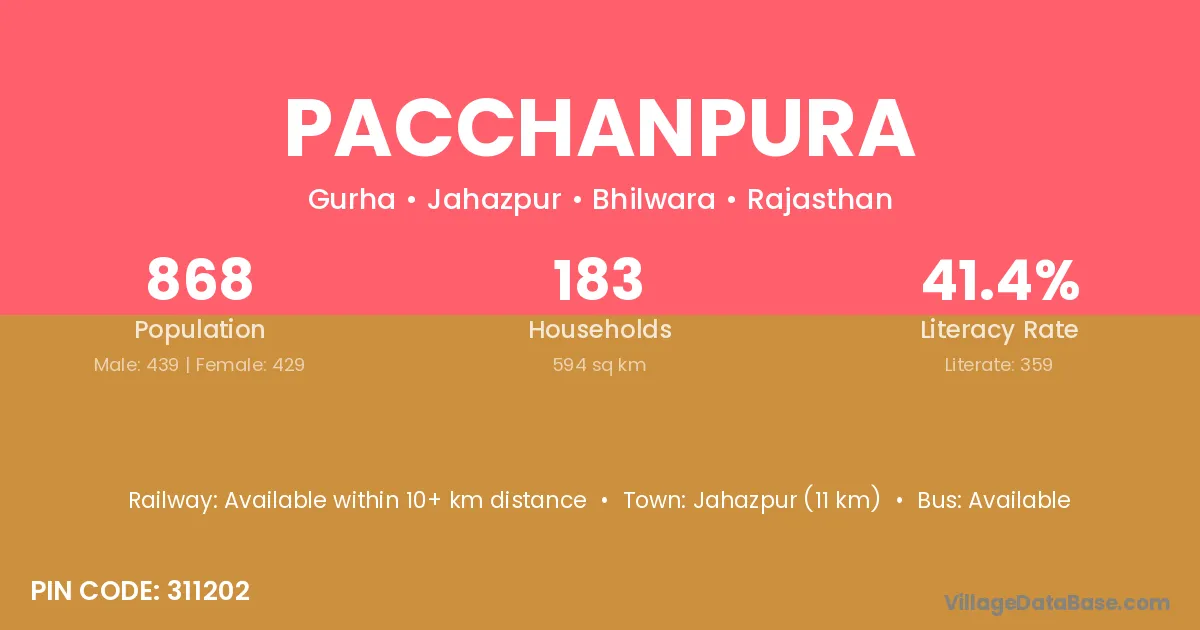 Pacchanpura village has a total population of 868 people, of which 439 are males and 429 are females.