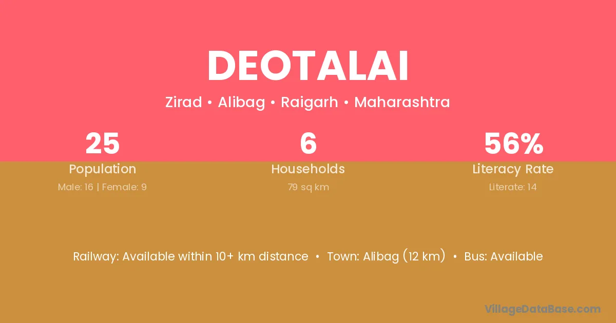 The literacy rate of Deotalai village is 30.77%. Male literacy stands at 53.26% and female literacy at 10.68%.