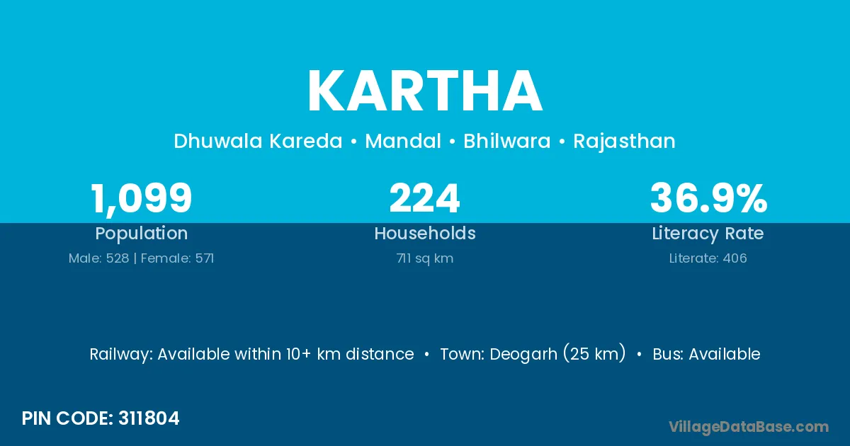 Deogarh (25 km) is the nearest town to Kartha village for major economic activities and is located approximately 25 km away.