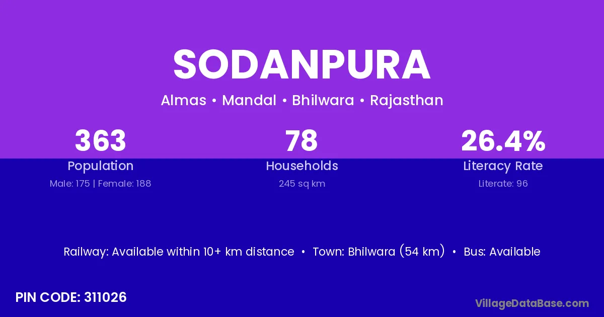 Sodanpura village has a total population of 363 people, of which 175 are males and 188 are females.