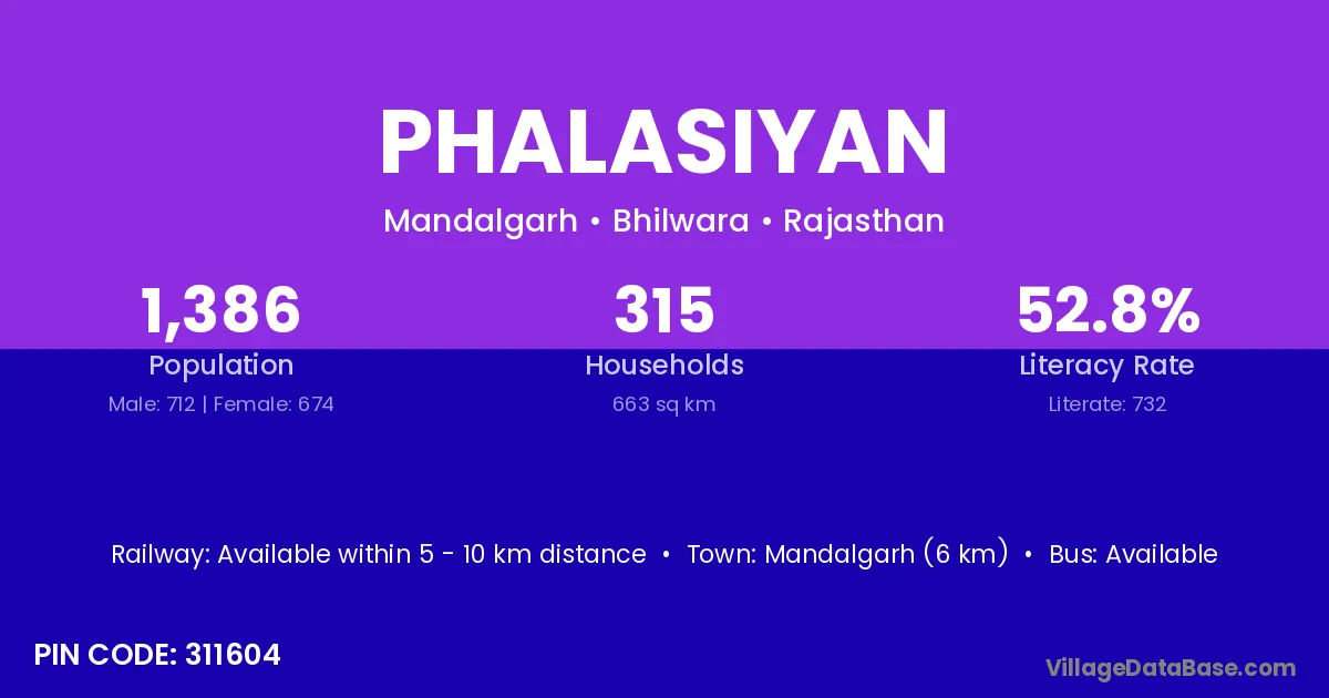 Mandalgarh (6 km) is the nearest town to Phalasiyan village for major economic activities and is located approximately 6 km away.