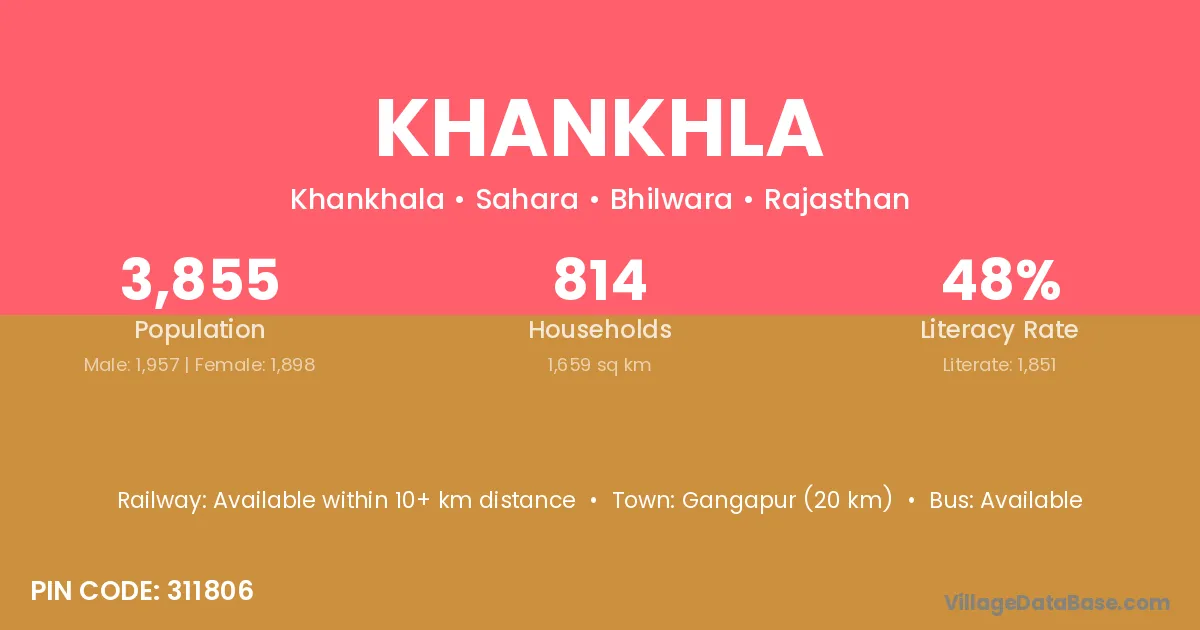 Gangapur (20 km) is the nearest town to Khankhla village for major economic activities and is located approximately 20 km away.