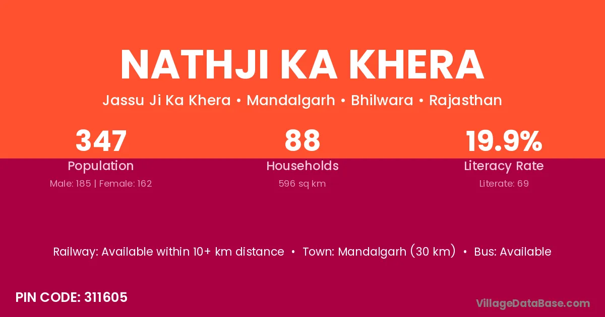 Nathji Ka Khera village has a total population of 385 people, of which 190 are males and 195 are females.