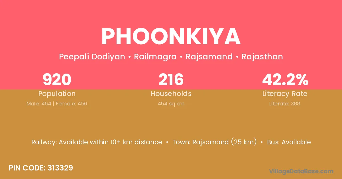 According to Census 2011 information, the village code of Phoonkiya village is 311806.