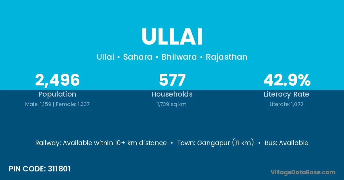 Gangapur (11 km) is the nearest town to Ullai village for major economic activities and is located approximately 11 km away.