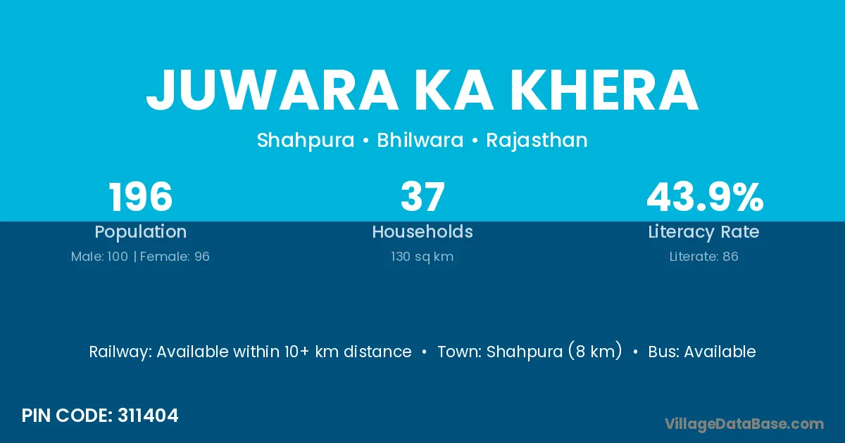 Shahpura (8 km) is the nearest town to Juwara Ka Khera village for major economic activities and is located approximately 8 km away.