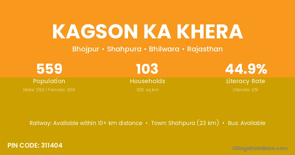 Kagson Ka Khera village has a total population of 559 people, of which 293 are males and 266 are females.