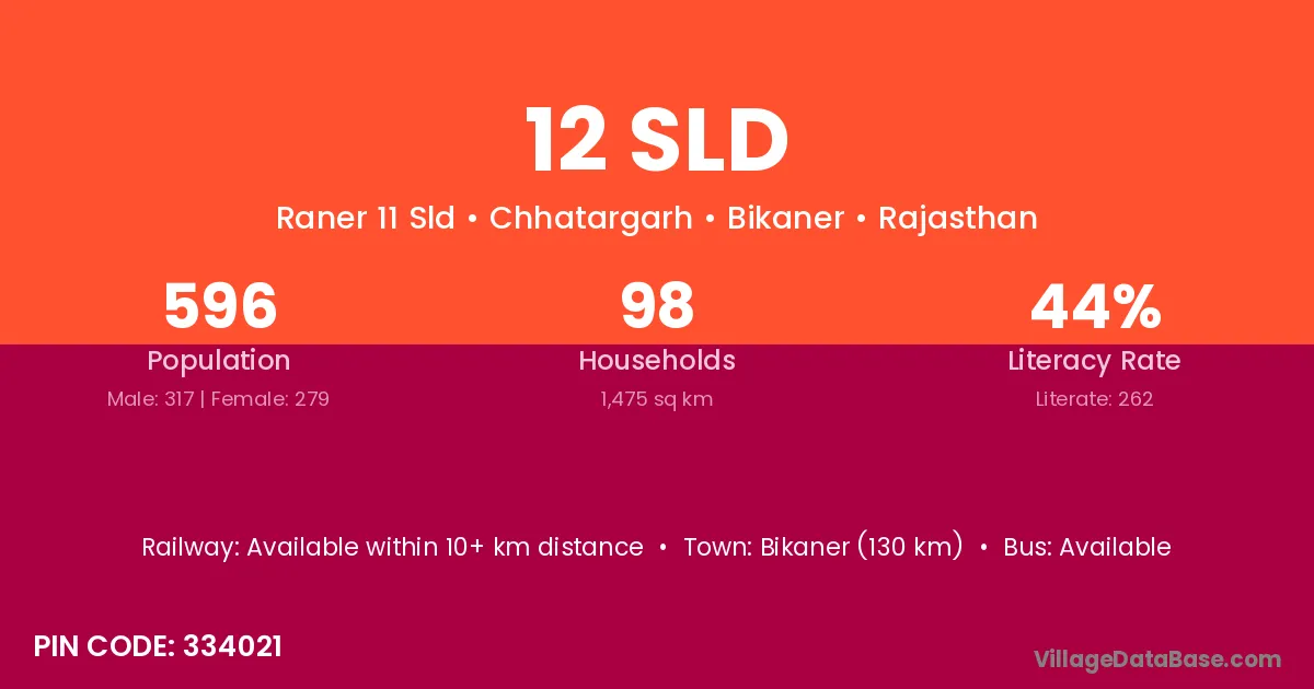 Bikaner (130 km) is the nearest town to 12 Sld village for major economic activities and is located approximately 130 km away.