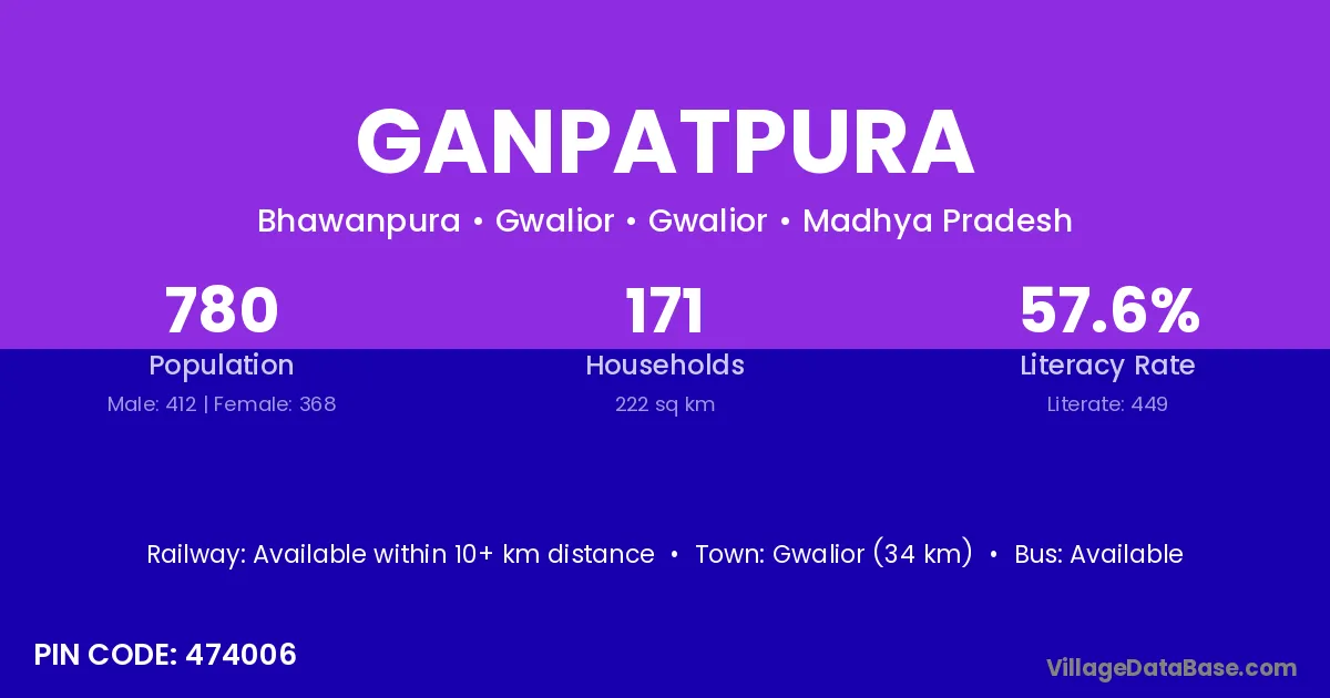 The literacy rate of Ganpatpura village is 62.94%. Male literacy stands at 69.92% and female literacy at 55.32%.
