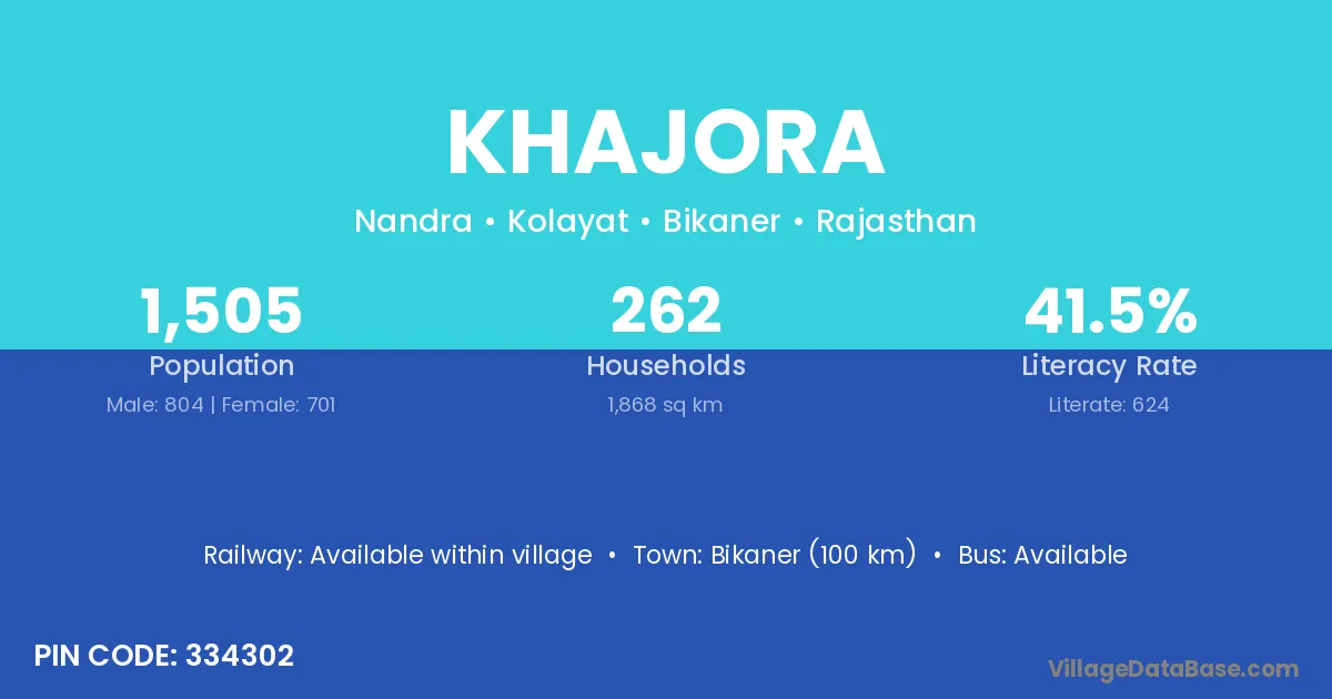 Bikaner (100 km) is the nearest town to Khajora village for major economic activities and is located approximately 100 km away.