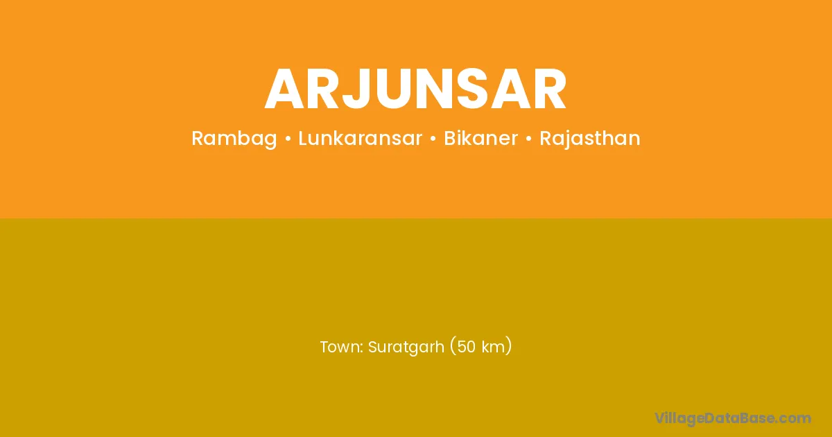 Suratgarh (50 km) is the nearest town to Arjunsar village for major economic activities and is located approximately 50 km away.
