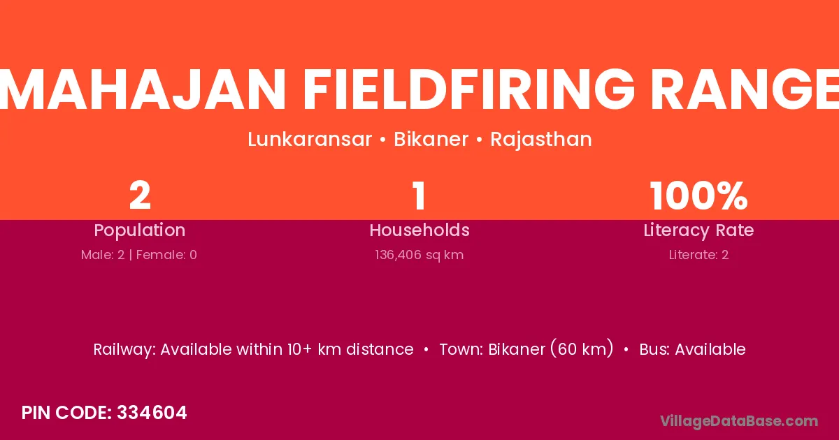 Mahajan Fieldfiring Range village has a total population of 2 people, of which 2 are males and 0 are females.