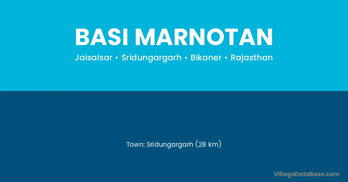Sridungargarh (28 km) is the nearest town to Basi Marnotan village for major economic activities and is located approximately 28 km away.