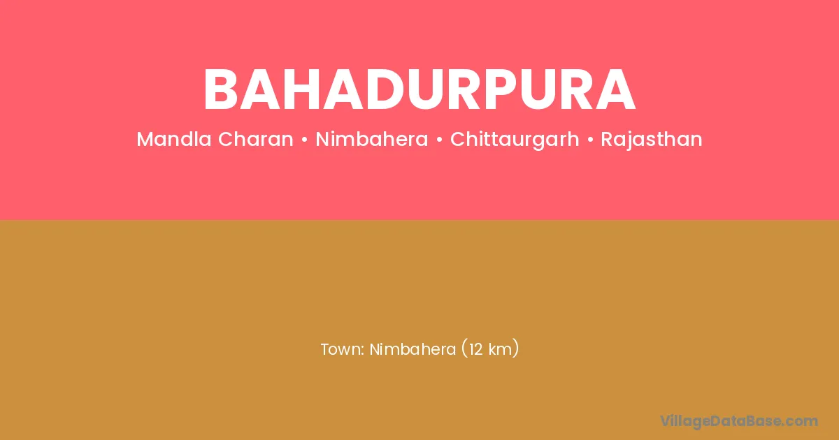Bundi (19 km) is the nearest town to Bahadurpura village for major economic activities and is located approximately 19 km away.