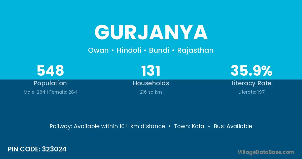 According to Census 2011 information, the village code of Gurjanya village is 323024.