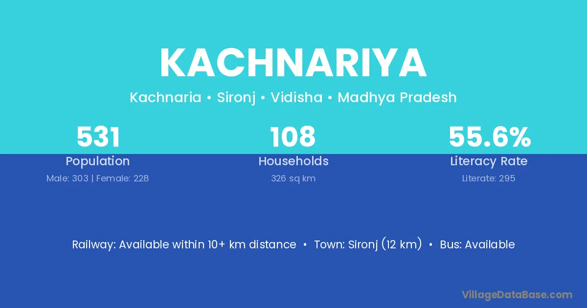 Bundi (33 km) is the nearest town to Kachnariya village for major economic activities and is located approximately 33 km away.