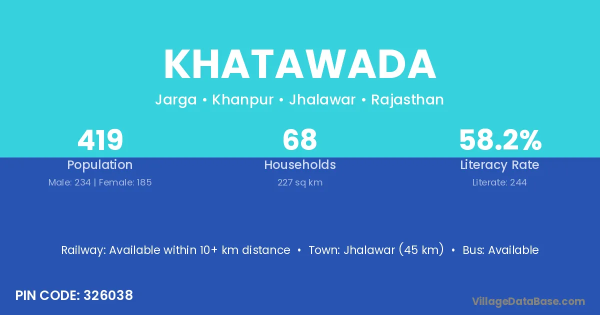 According to Census 2011 information, the village code of Khatawada village is 323024.
