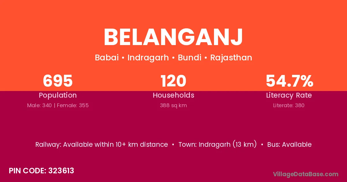 Indragarh (13 km) is the nearest town to Belanganj village for major economic activities and is located approximately 13 km away.
