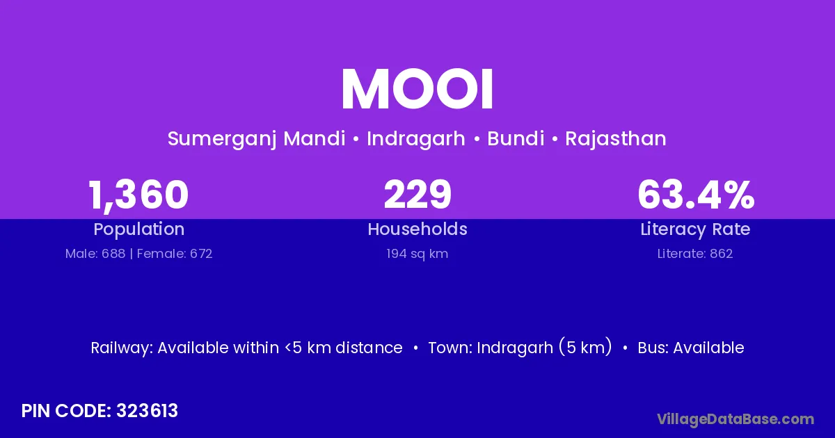 Indragarh (5 km) is the nearest town to Mooi village for major economic activities and is located approximately 5 km away.