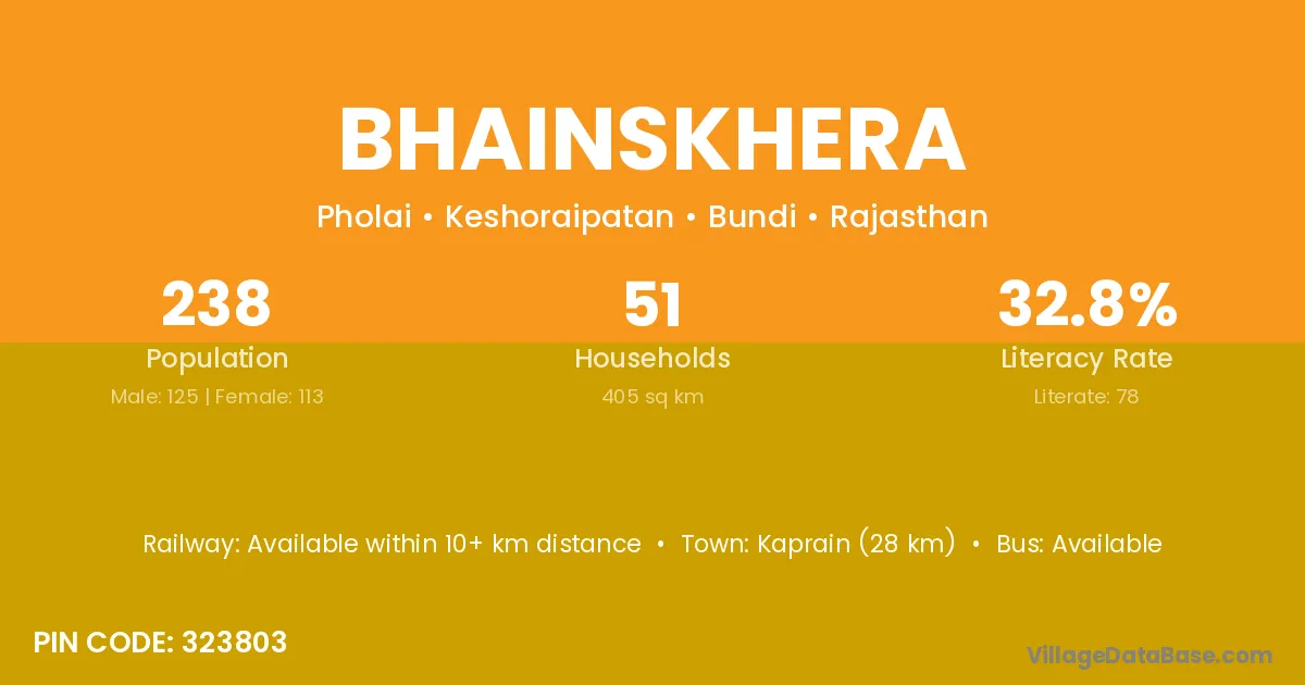 According to Census 2011 information, the village code of Bhainskhera village is 323803.