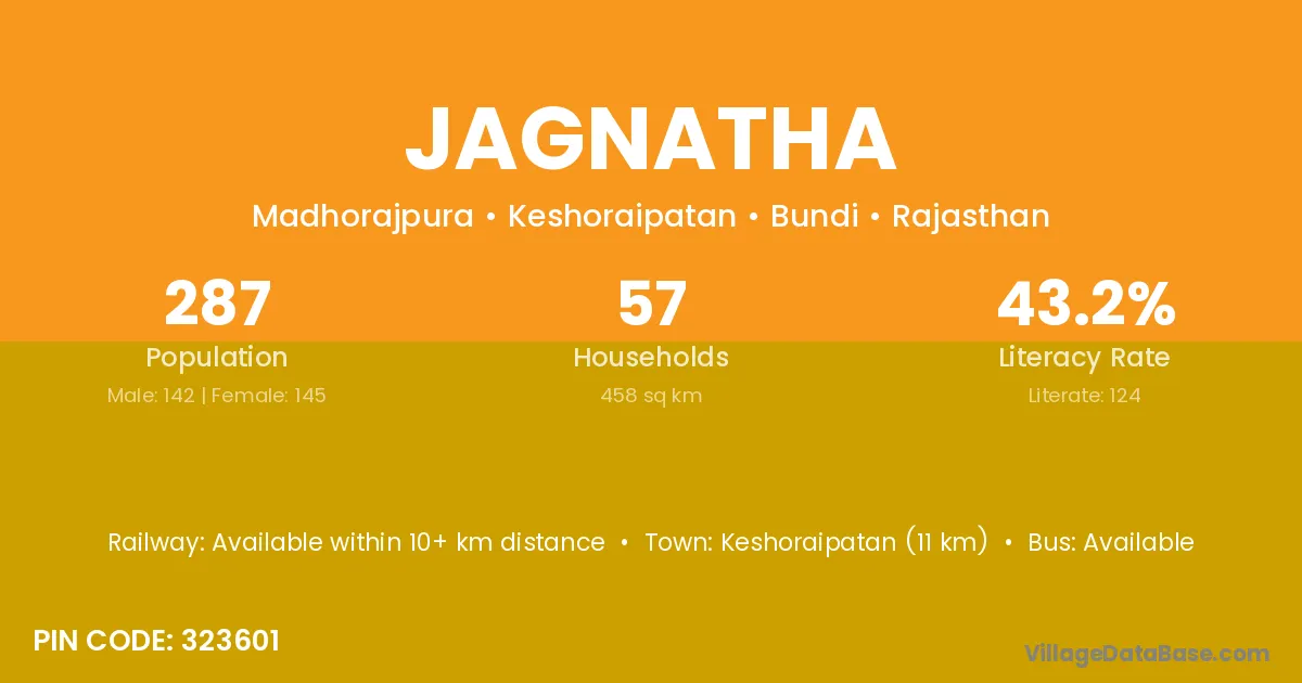 Keshoraipatan (11 km) is the nearest town to Jagnatha village for major economic activities and is located approximately 11 km away.