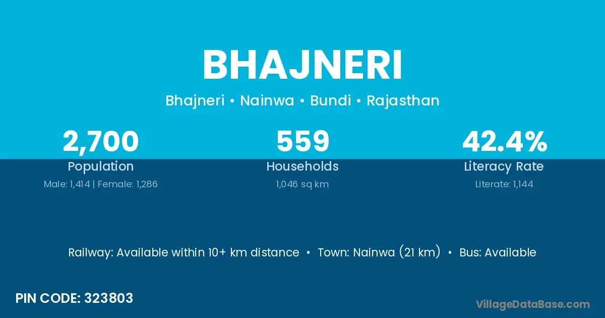 Nainwa (21 km) is the nearest town to Bhajneri village for major economic activities and is located approximately 21 km away.