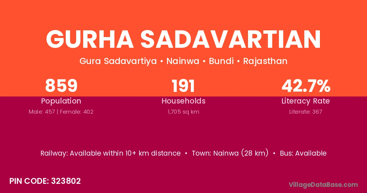 Nainwa (28 km) is the nearest town to Gurha Sadavartian village for major economic activities and is located approximately 28 km away.