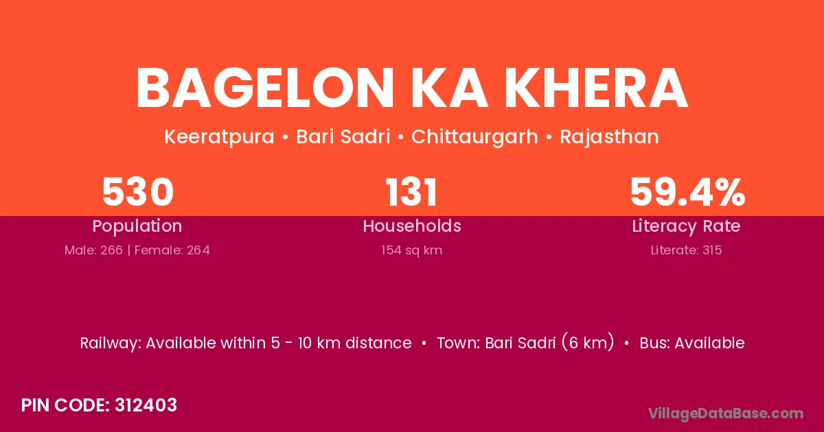 Bagelon Ka Khera village has a total population of 530 people, of which 266 are males and 264 are females.