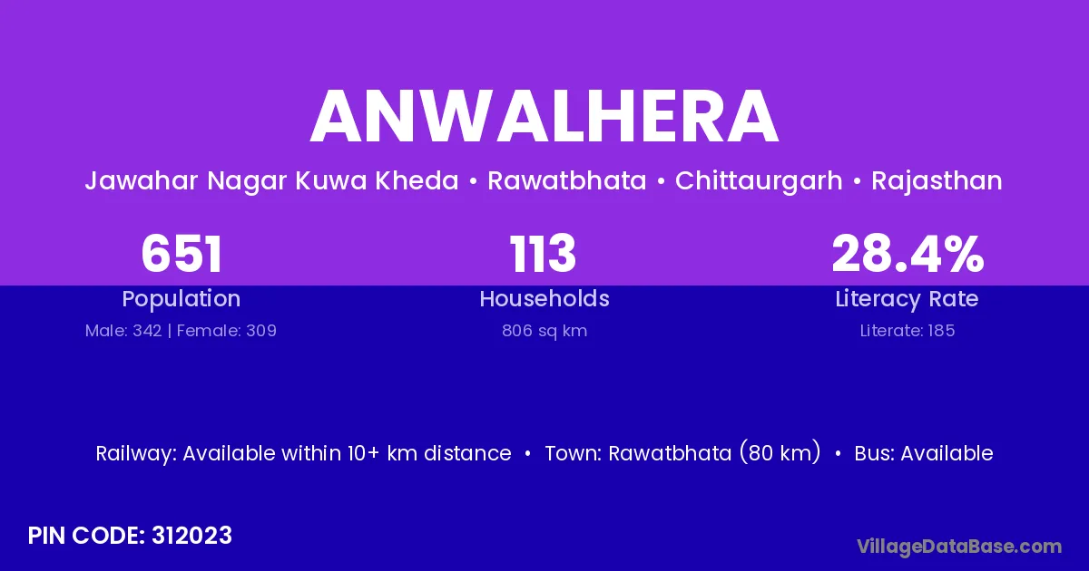 According to Census 2011 information, the village code of Anwalhera village is 312023.