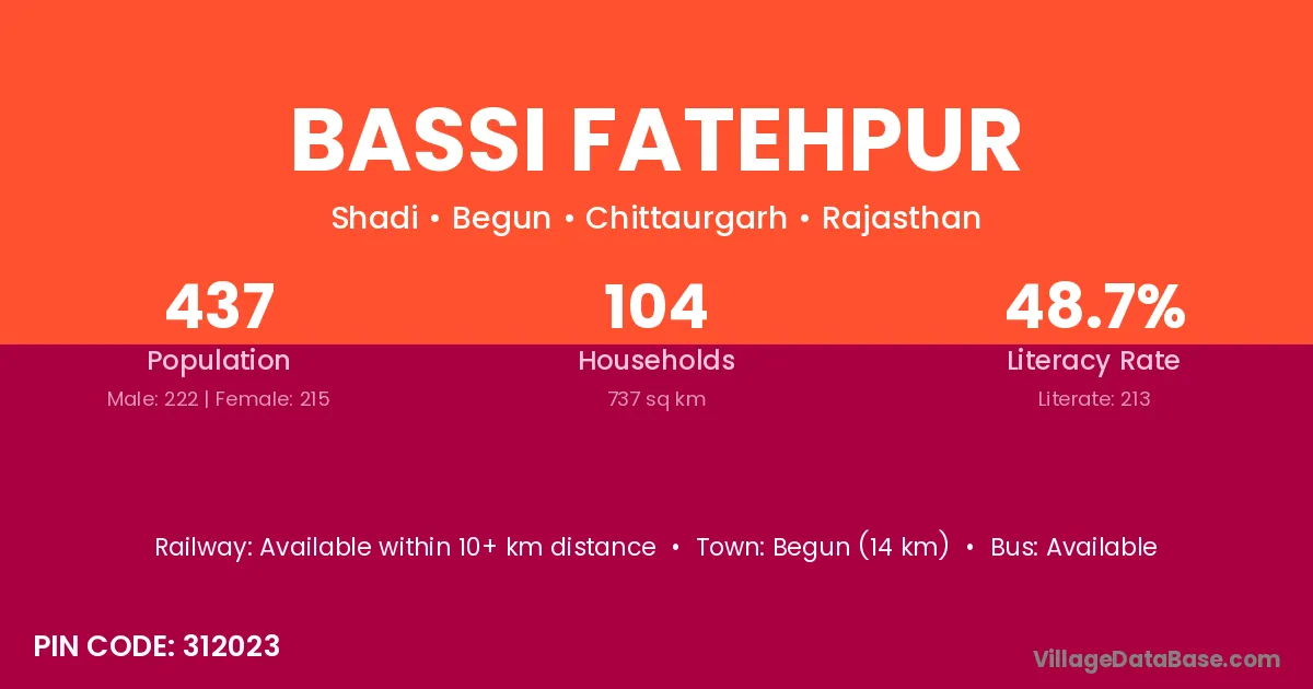 Bassi Fatehpur village has a total population of 437 people, of which 222 are males and 215 are females.