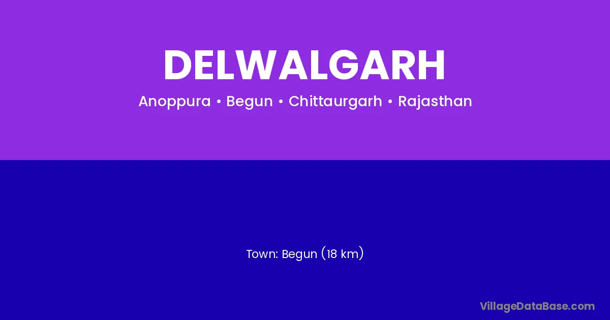 Begun (18 km) is the nearest town to Delwalgarh village for major economic activities and is located approximately 18 km away.