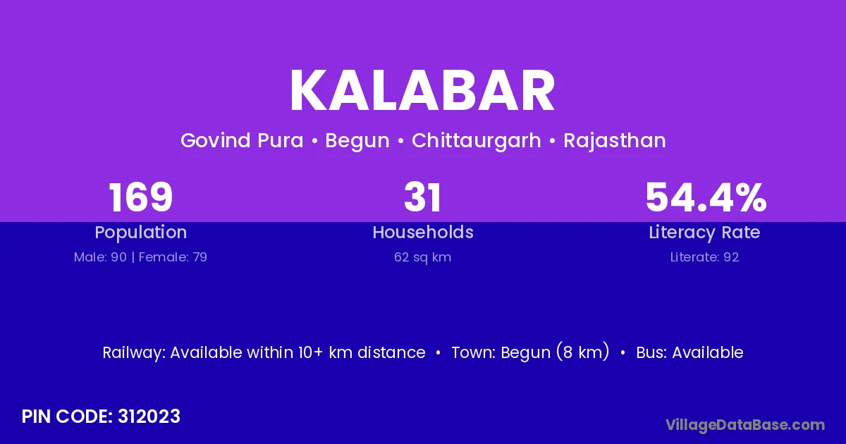 Begun (8 km) is the nearest town to Kalabar village for major economic activities and is located approximately 8 km away.