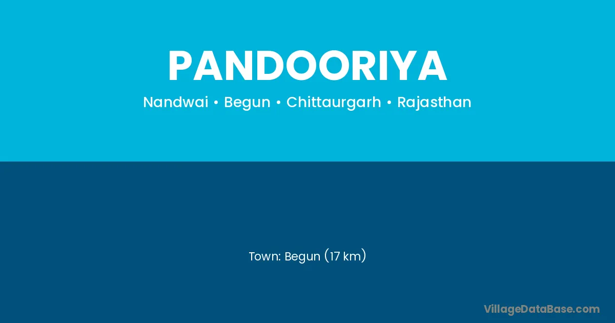 Begun (17 km) is the nearest town to Pandooriya village for major economic activities and is located approximately 17 km away.