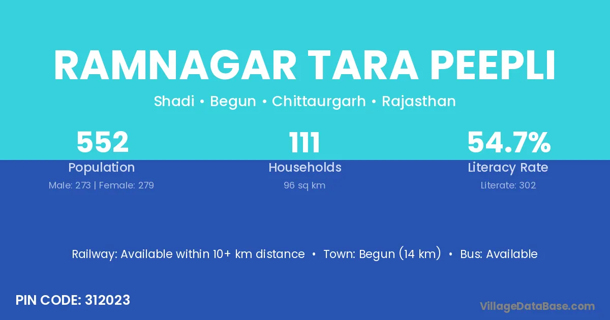 Begun (14 km) is the nearest town to Ramnagar Tara Peepli village for major economic activities and is located approximately 14 km away.
