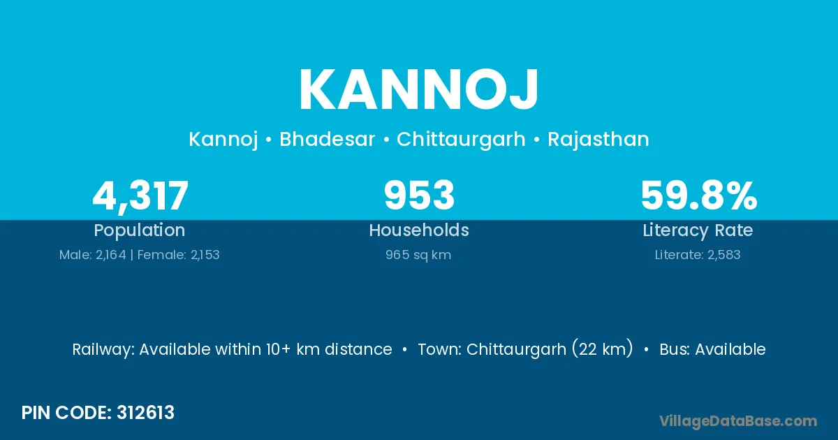 Chittaurgarh (22 km) is the nearest town to Kannoj village for major economic activities and is located approximately 22 km away.
