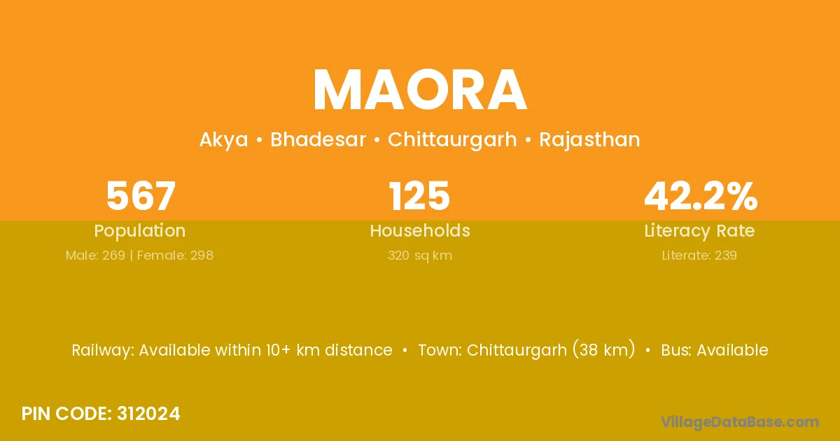 Chittaurgarh (38 km) is the nearest town to Maora village for major economic activities and is located approximately 38 km away.