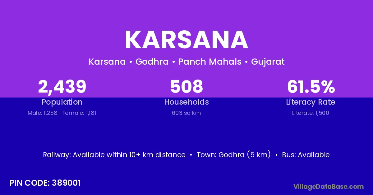 Kanor (8 km) is the nearest town to Karsana village for major economic activities and is located approximately 8 km away.