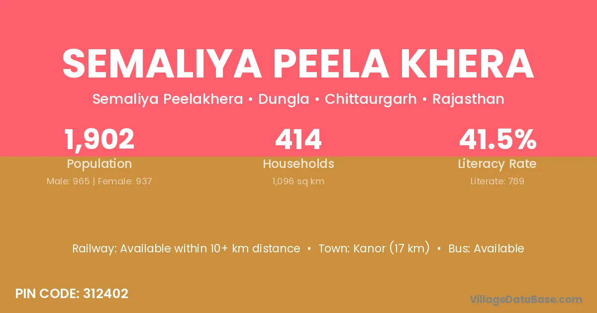 Kanor (17 km) is the nearest town to Semaliya Peela Khera village for major economic activities and is located approximately 17 km away.