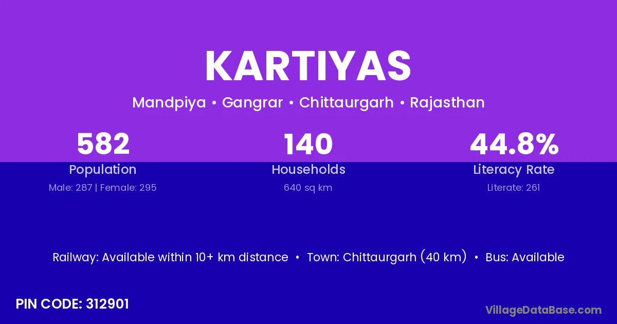 Chittaurgarh (40 km) is the nearest town to Kartiyas village for major economic activities and is located approximately 40 km away.