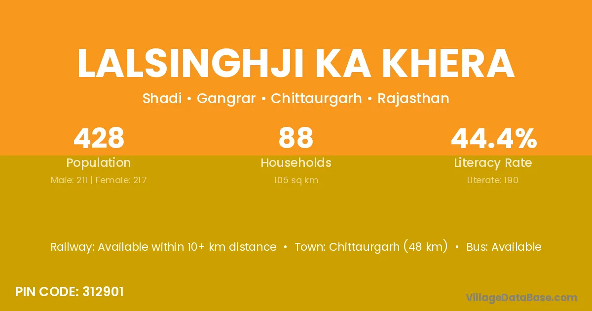 Lalsinghji Ka Khera village has a total population of 428 people, of which 211 are males and 217 are females.