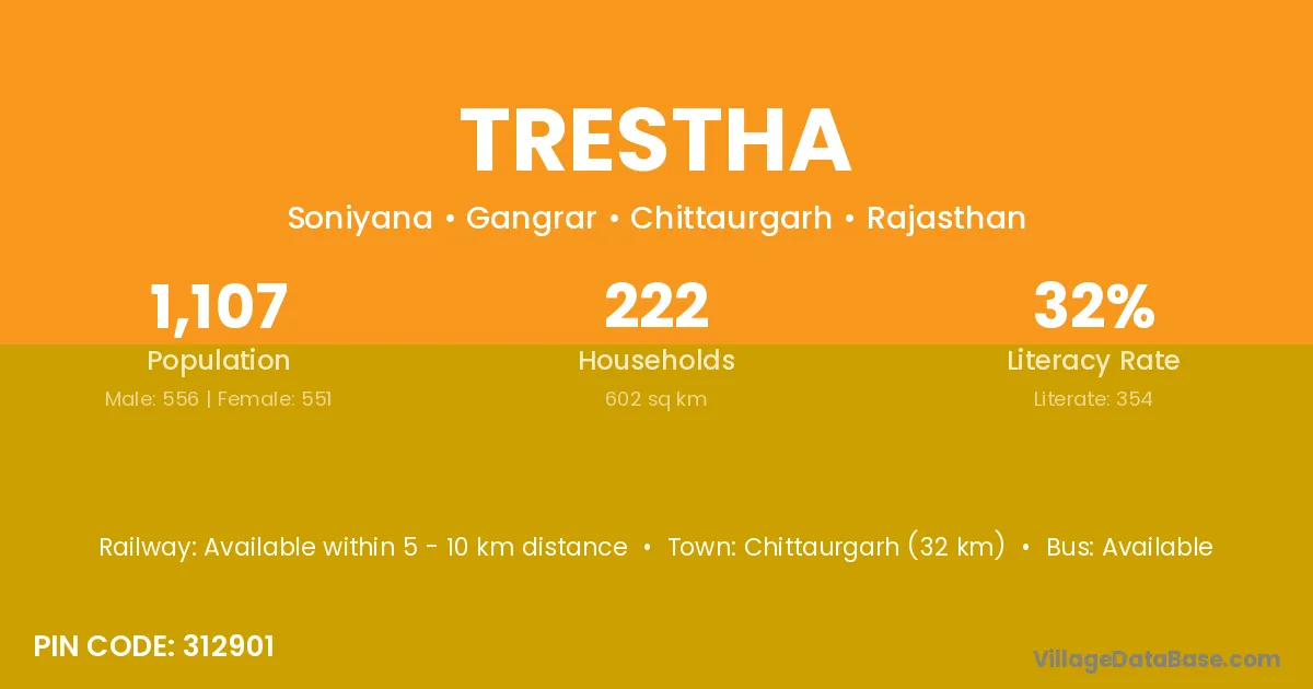 Chittaurgarh (32 km) is the nearest town to Trestha village for major economic activities and is located approximately 32 km away.