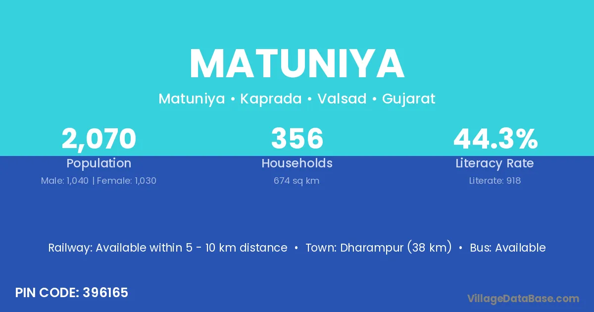 According to Census 2011 information, the village code of Matuniya village is 312204.
