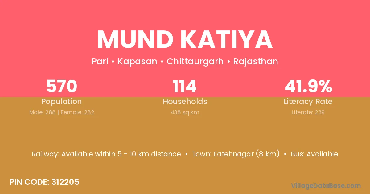 Mund Katiya village has a total population of 570 people, of which 288 are males and 282 are females.