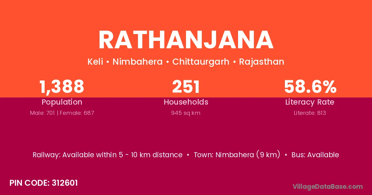 Nimbahera (9 km) is the nearest town to Rathanjana village for major economic activities and is located approximately 9 km away.