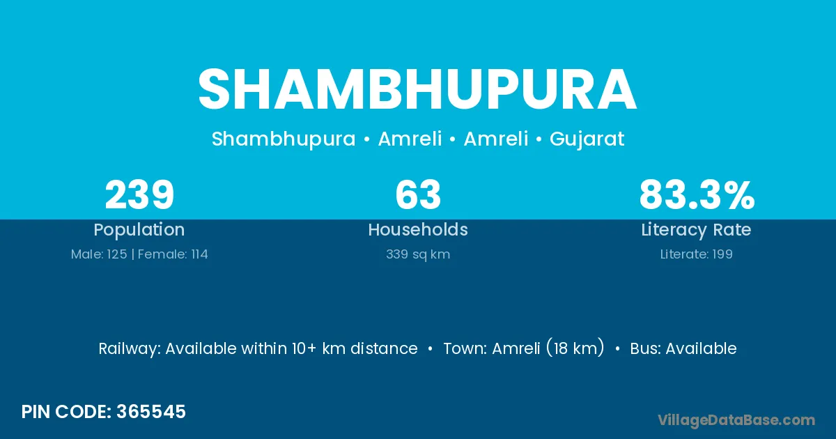 The literacy rate of Shambhupura village is 29.64%. Male literacy stands at 44.47% and female literacy at 15.40%.