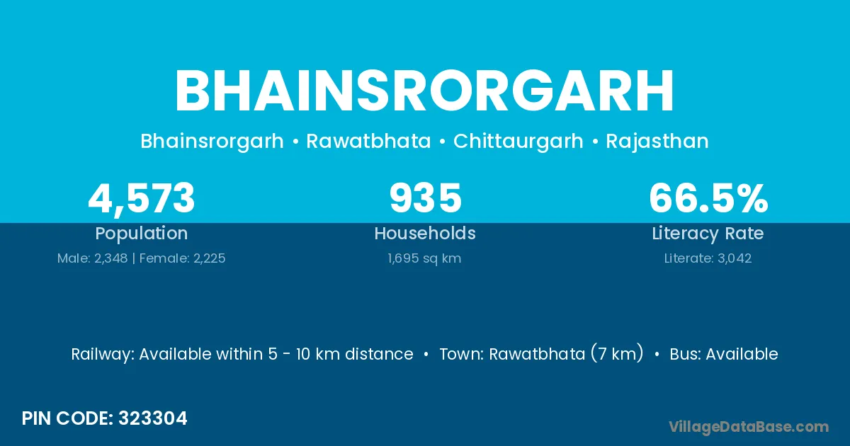 Rawatbhata (7 km) is the nearest town to Bhainsrorgarh village for major economic activities and is located approximately 7 km away.