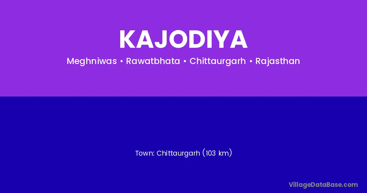 Chittaurgarh (103 km) is the nearest town to Kajodiya village for major economic activities and is located approximately 103 km away.