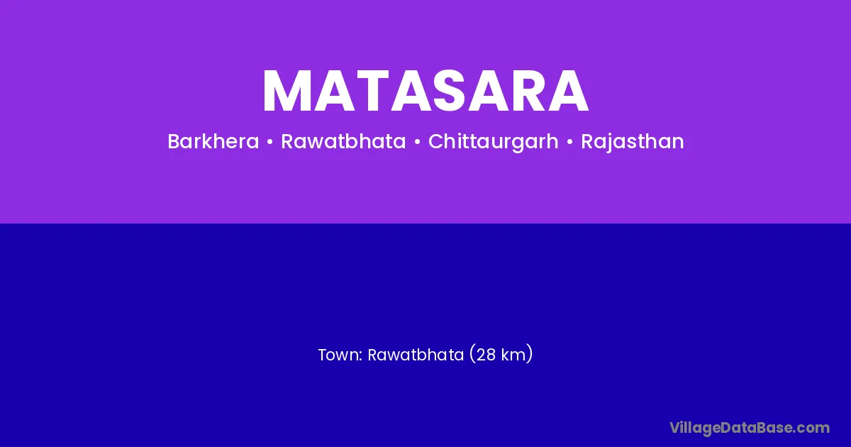 Rawatbhata (28 km) is the nearest town to Matasara village for major economic activities and is located approximately 28 km away.