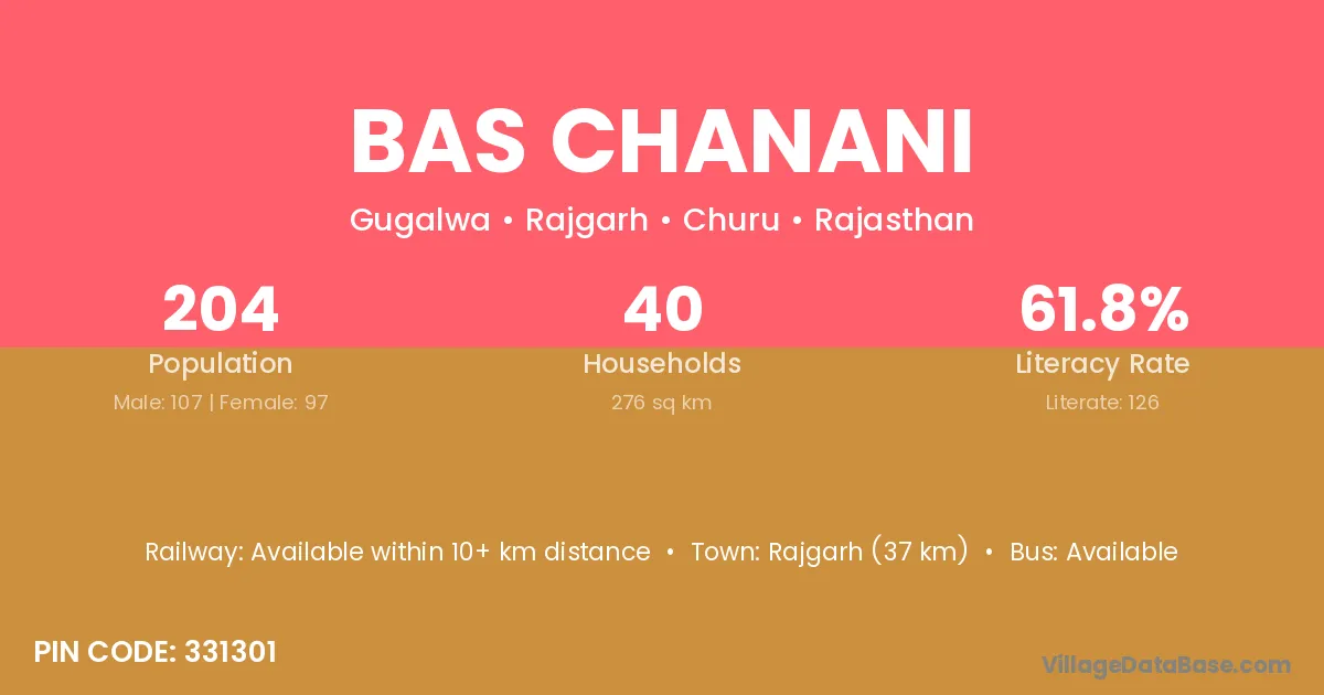 Rajgarh (37 km) is the nearest town to Bas Chanani village for major economic activities and is located approximately 37 km away.