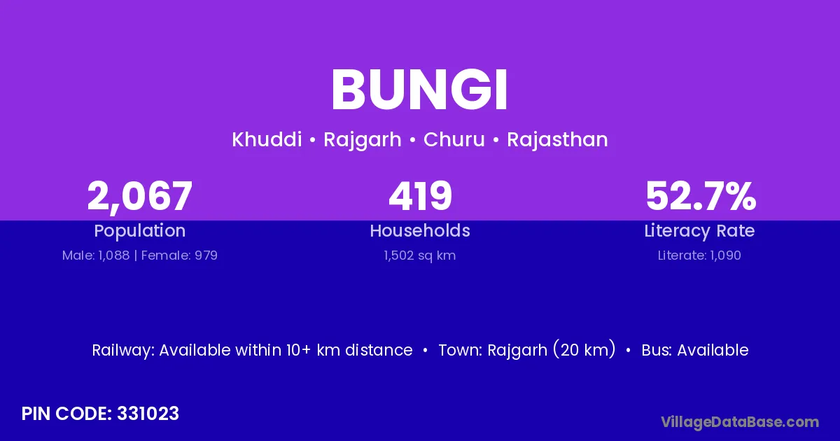 Bungi village is located in the Rajgarh Tehsil of the Churu district in Rajasthan .
